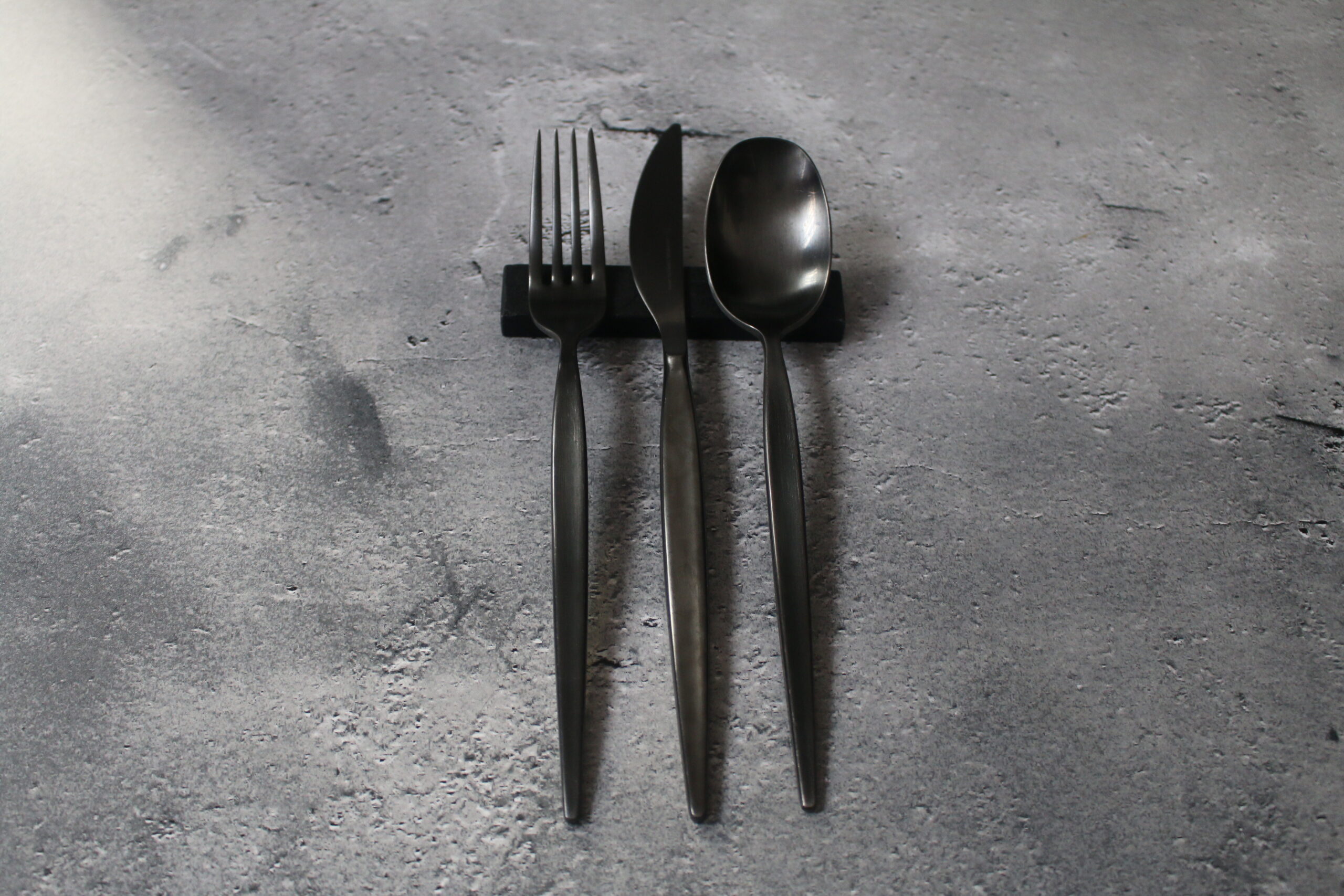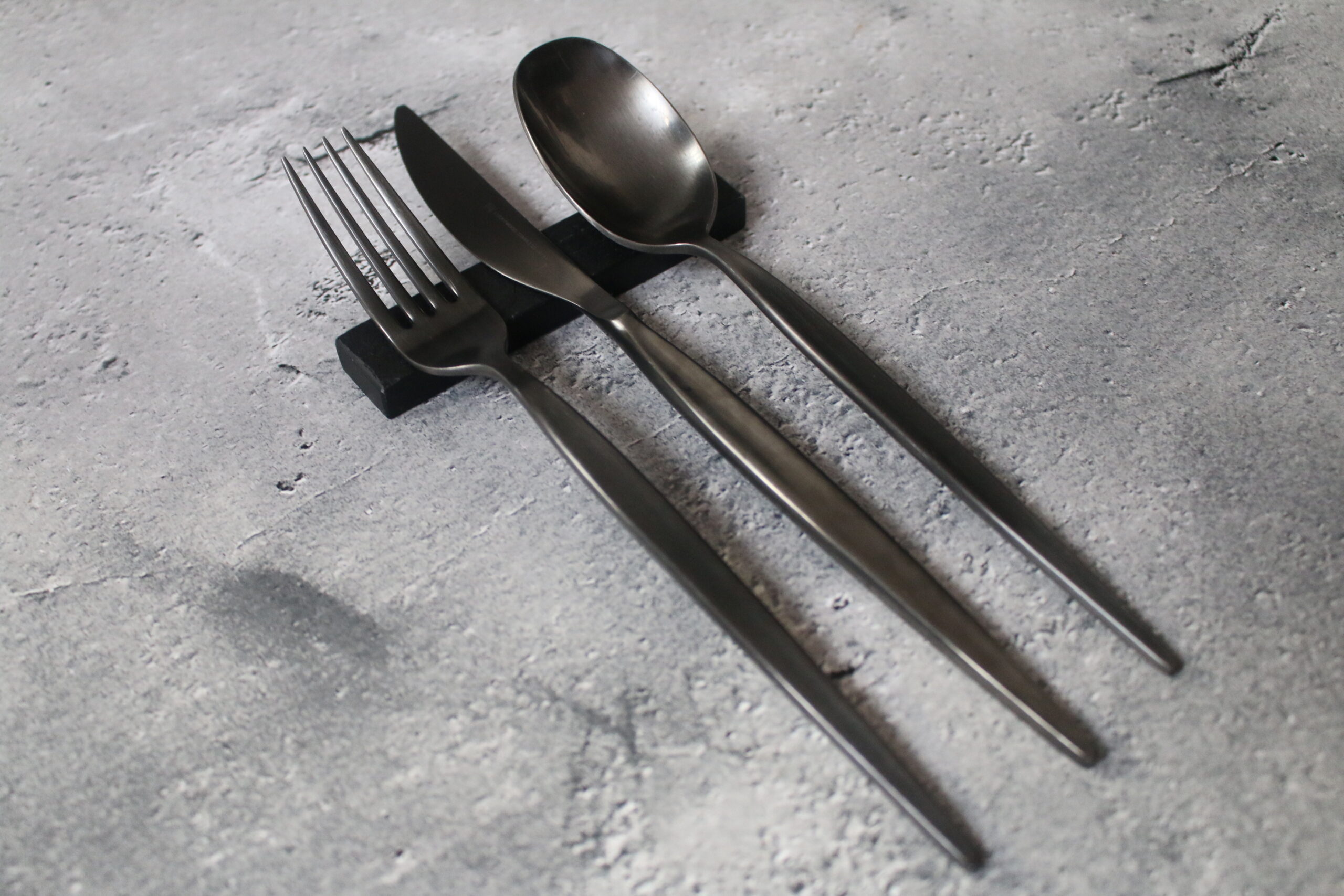 きめ細かく漆黒の石肌が特徴の硯石のカトラリーレストです。2億年以上かけてできたミルフィーユ状の粘板岩を手作業で切り出しています。海外で採れる石と比べるとなめらかで美しい漆黒色で、硯石の原料となっています。それを【採掘→成形→研磨→仕上げ】と全ての工程を人の手で作業している完全ハンドメイドの商品です。一つひとつの味わいある違いをお愉しみください。